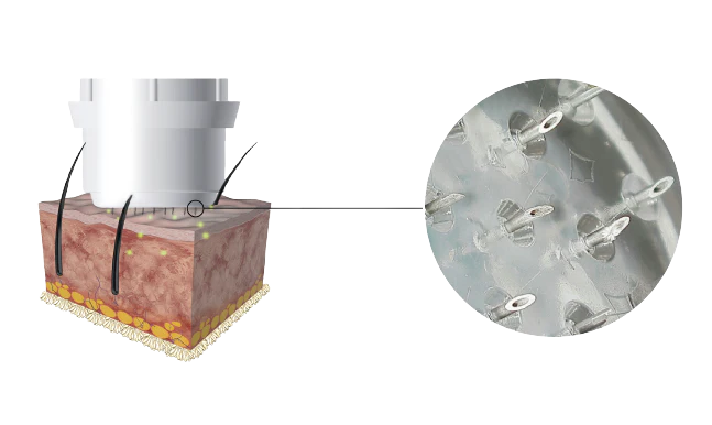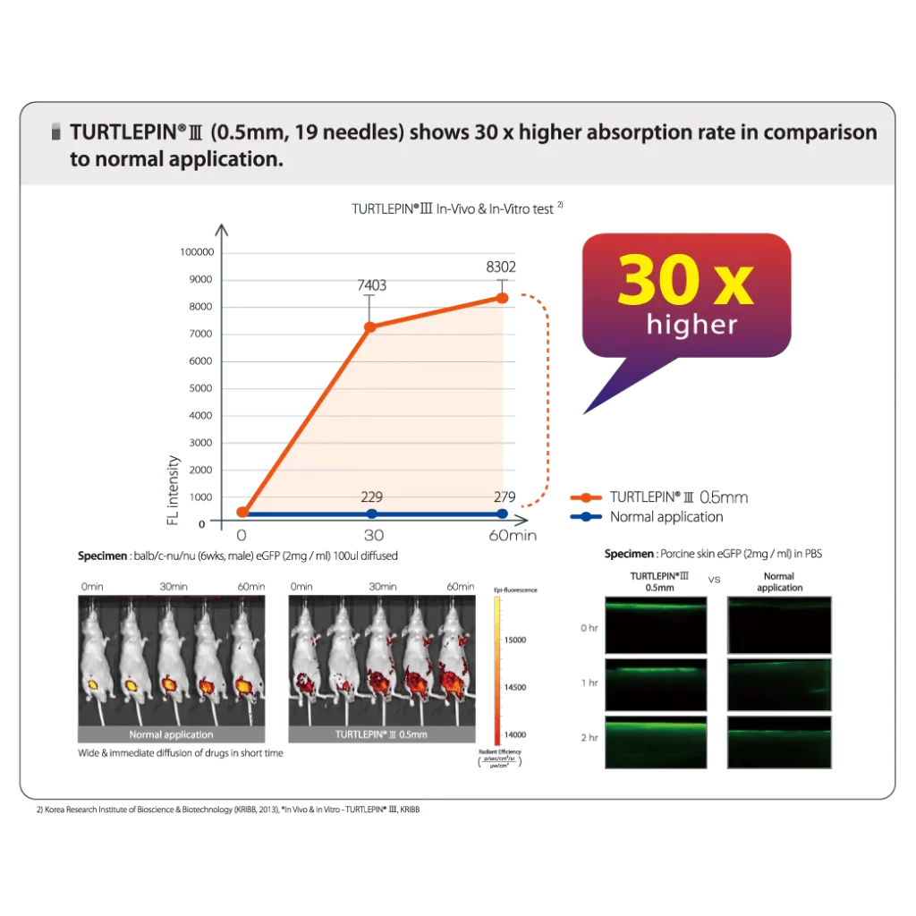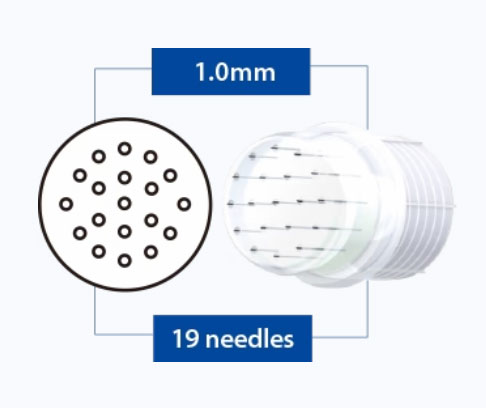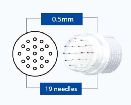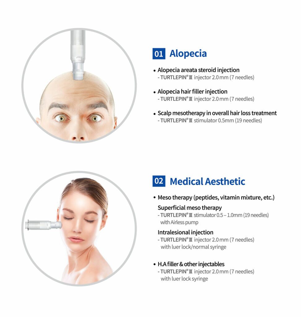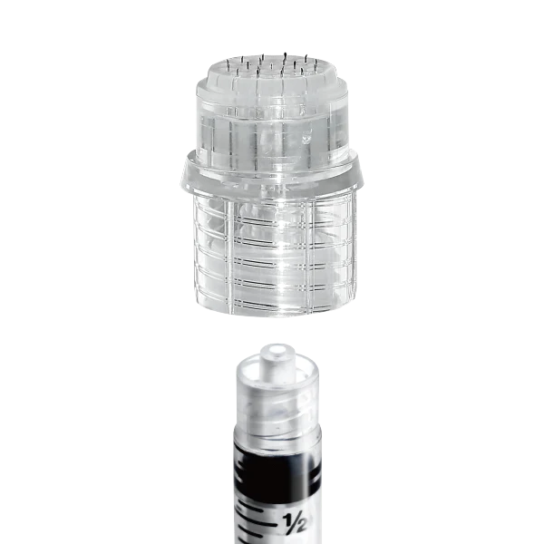 Equal diffusion of liquid drugs through equally positioned hypodermic needles
